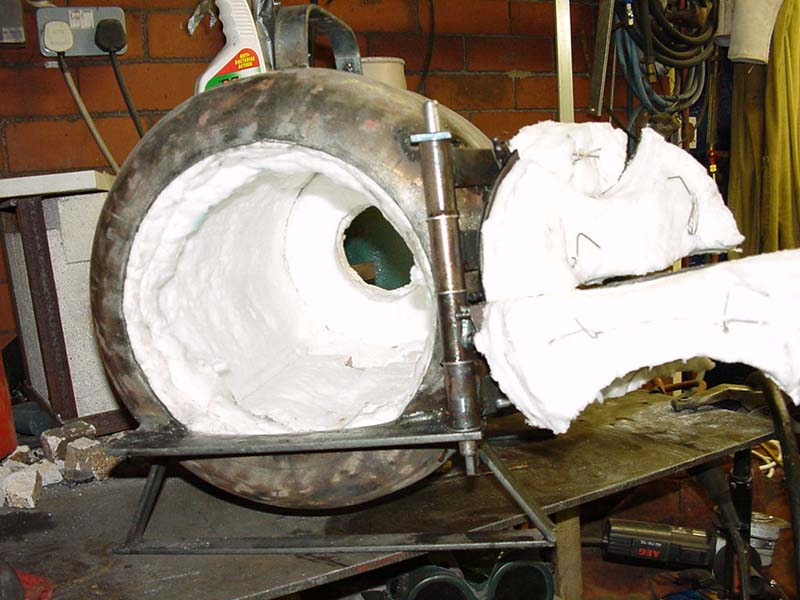 And lined with ceramic wool, sprayed with rigidiser, and ready to fire!