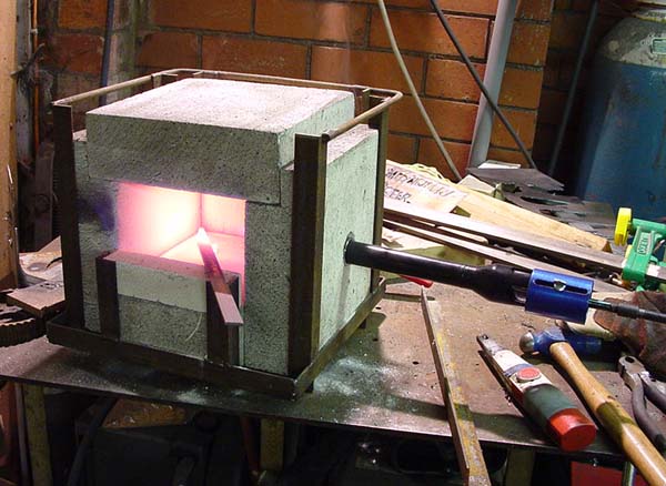 It's just a firebrick box, a roaring burner from Rex at Hybrid Burners, and a tank of propane.