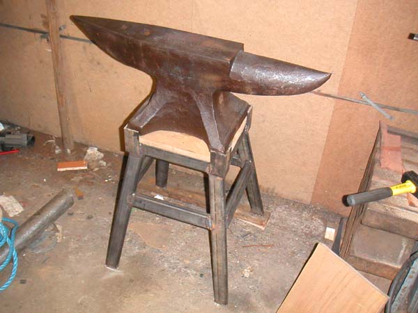 Here's the anvil on its new stand. It's 3mm wall steel tube, filled with sand for a bit of damping. I plan to keep a litter of tools underneath it.