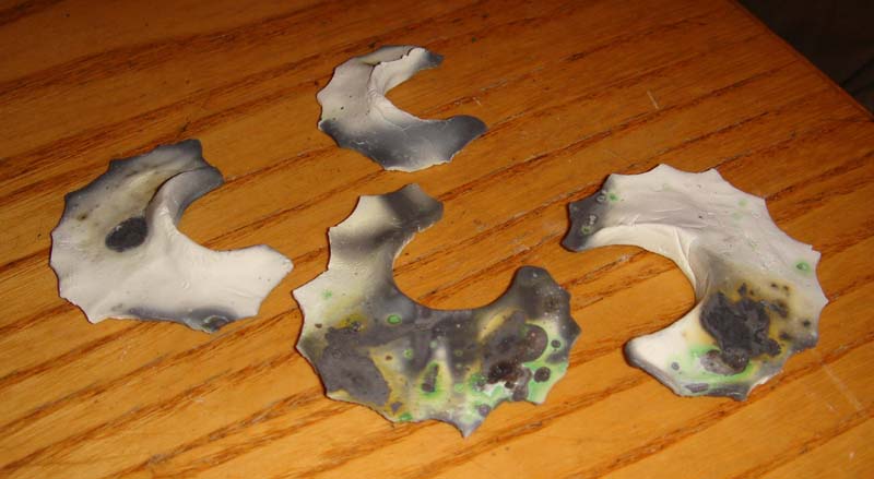 The green was mostly water soluble, and sadly went away while washing off the smoke. I think it's copper chloride.