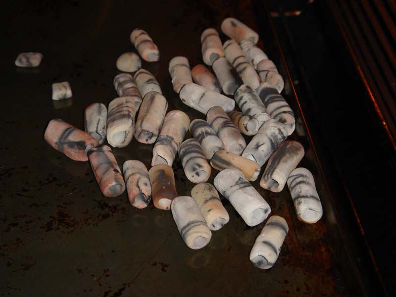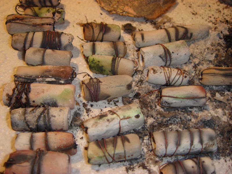We spent the day with Ebba putting things in saggars. Mostly paperclay, with salt and copper sulphate and sawdust and wrapped copper wireAnd .
