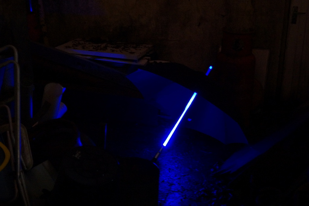 Tiff and I bought light-up Blade-Runner style umbrellas from eBay for EMFCamp 2014.