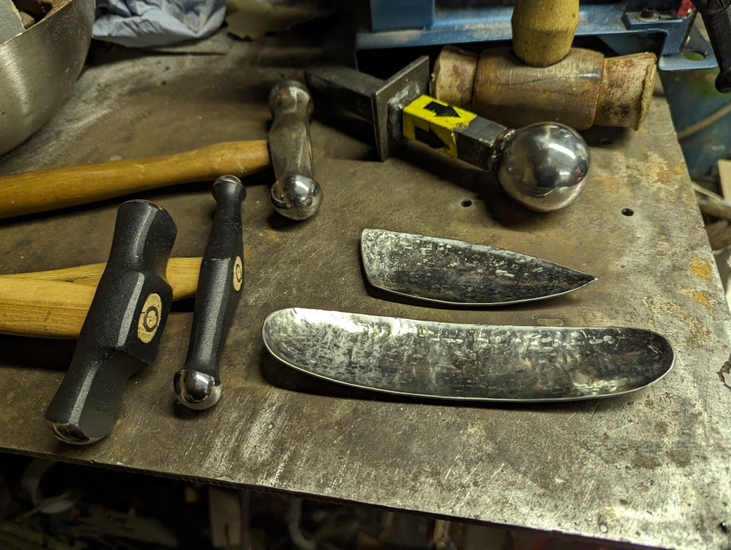 1.5mm titanium sheet, hammers. More experiments in cutlery ergonomics.