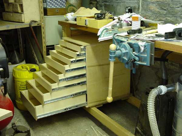And now, with drawers. They took *ages* to make, and consumed two whole sheets of ply. Don't make drawers unless you really have to.