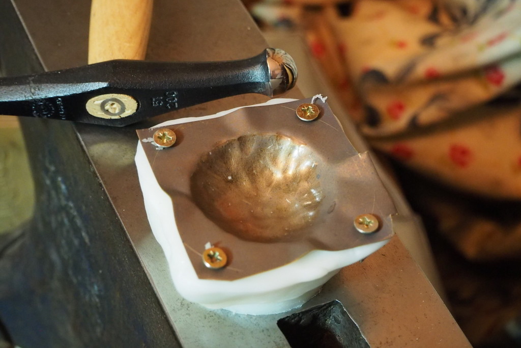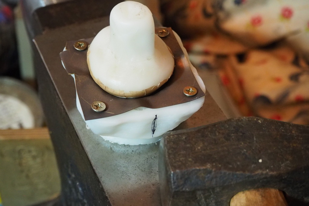 After that, hold the master in the vice, and use it as a stake to texture the brass on.