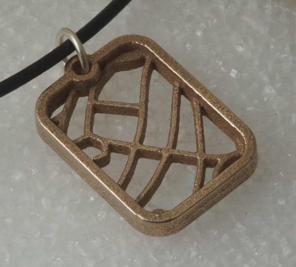 Steel and bronze, printed by Shapeways, made with their super-easy 2D to 3D tool.