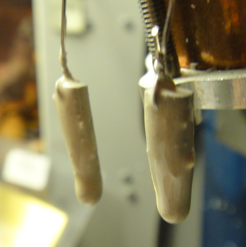 And dipped in zirconia paint, to try to keep them clean during heat treatment: