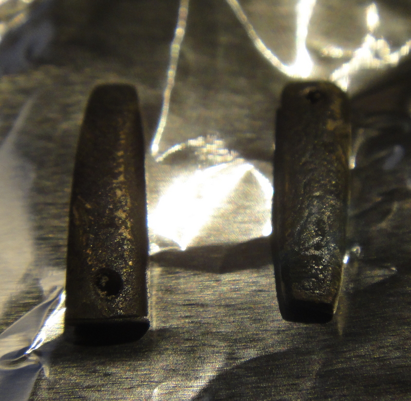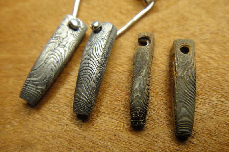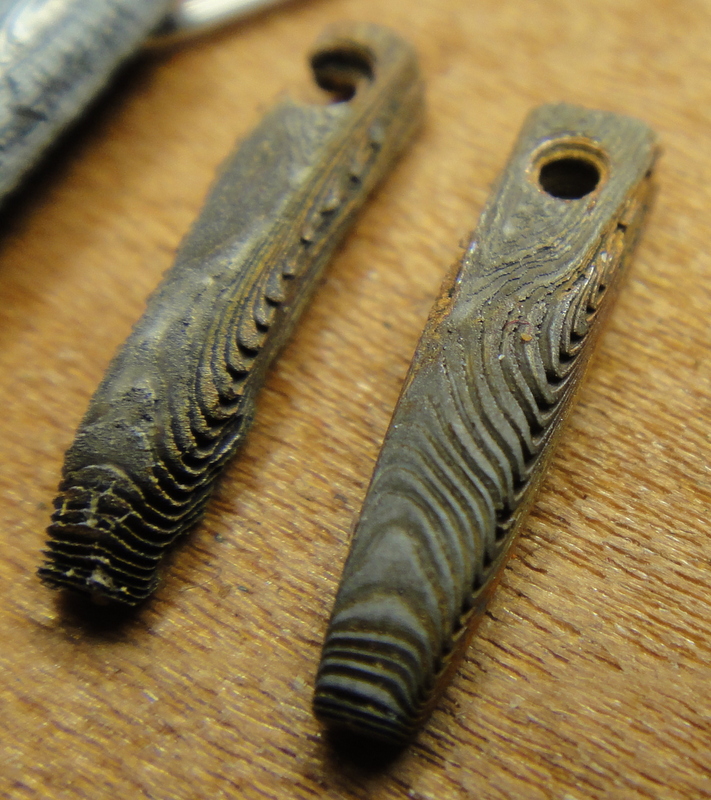 Etched in warm brick cleaner, which got a nice deep etch. Also seen here is the reult of etching the same stuff in hot brick cleaner for far too long: