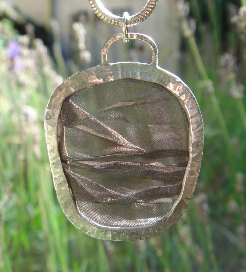 Stainless mesh (from the Scientific Wire Company), forged fine silver