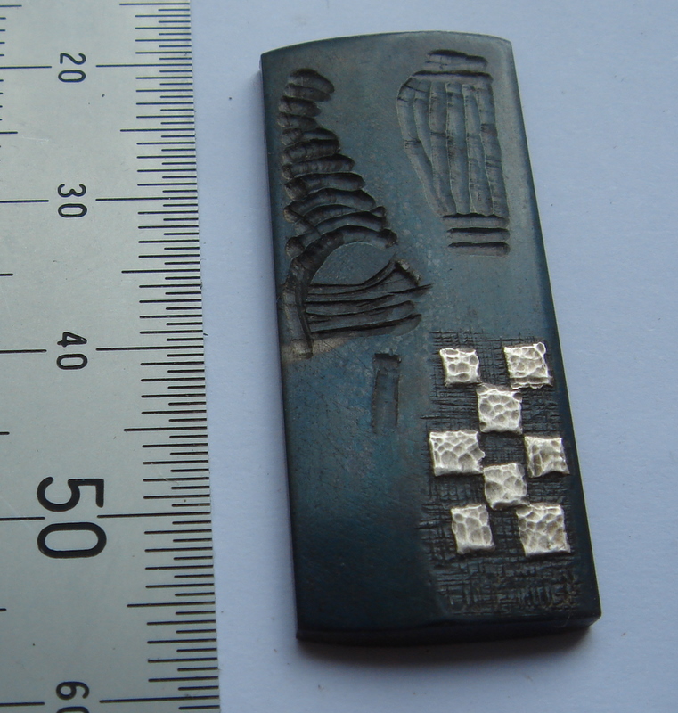 Chisel as before, and apply fine silver shapes cut with paper punches.