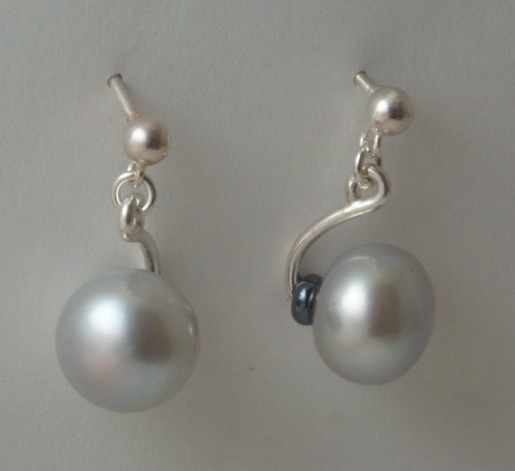 Pearl, silver, haematite bead