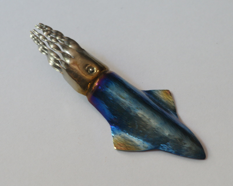 Titanium, hammers, heat colouring. I used 0.7mm Ti sheet from a bit of aeroplane scrap, and it was really a bit thick and consequently hard to form. I had to make a bit of tooling to be able to form the neck crease. Next time, thinner sheet.