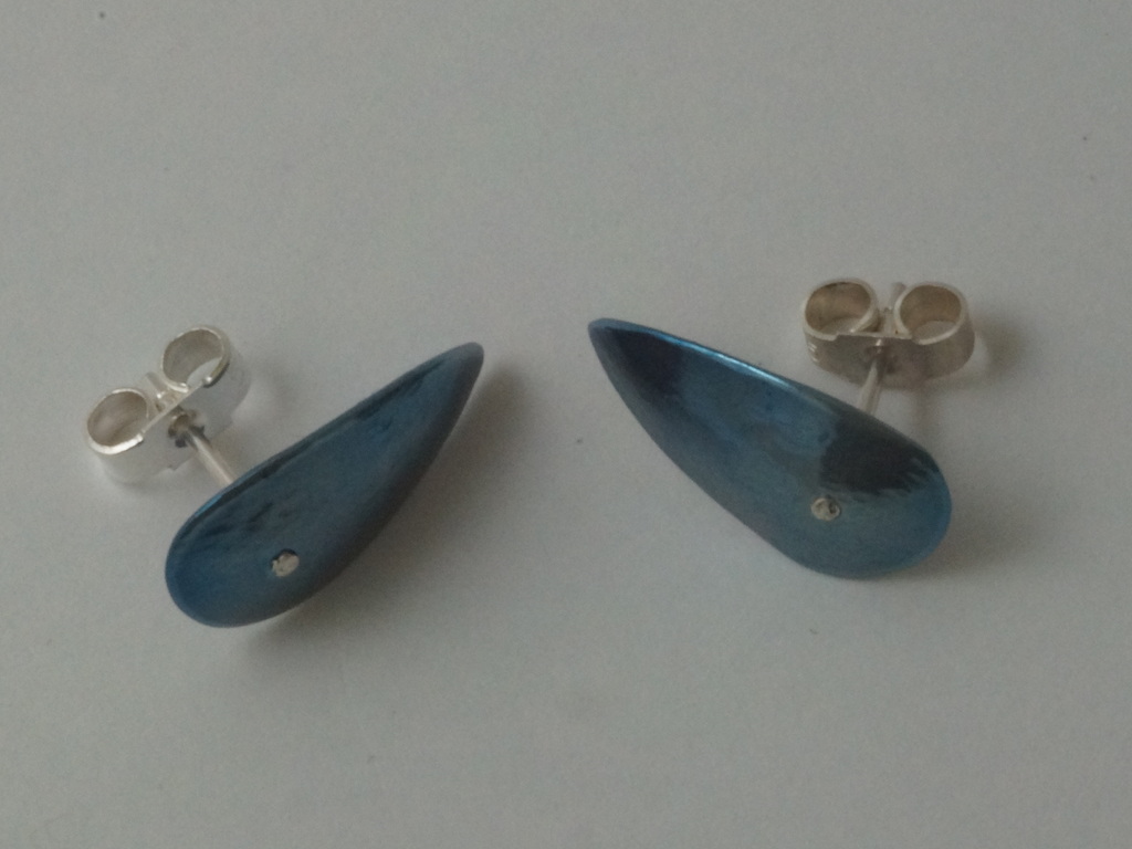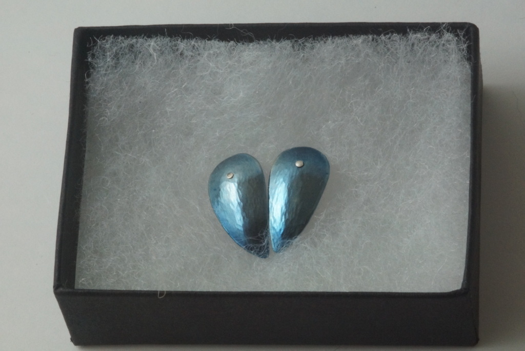 Titanium (0.3mm, hammered and heat-coloured), silver earwires.