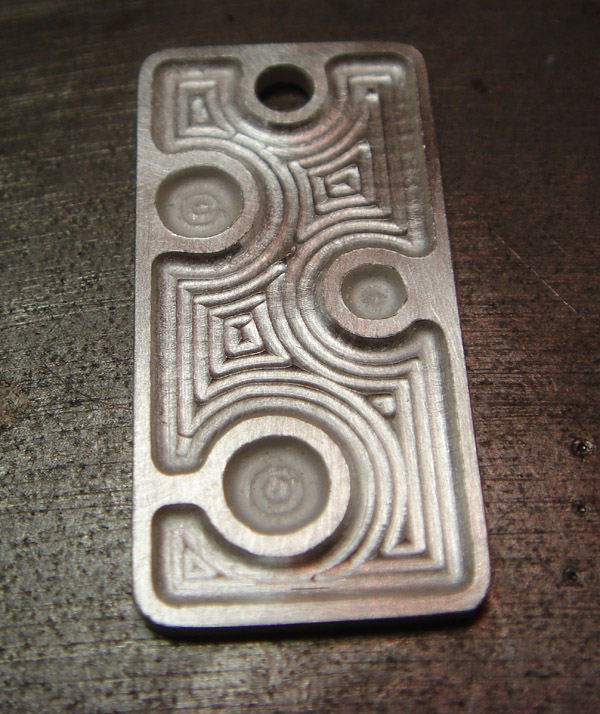 To be specific, sterling silver sheet (1.5mm), CNC engraved 0.5mm deep in 0,25mm passes, with a 1.5mm ball-end tool.