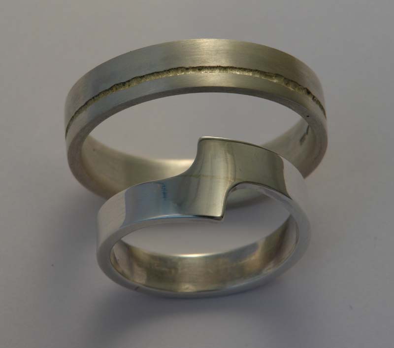 Wendy's is silver, fabricated. John's is silver, with an etched groove containing a tiny bit of gold.