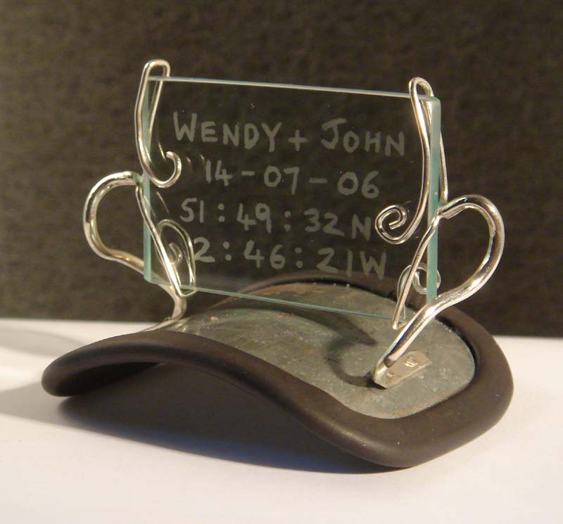 Design and etching by Donna, squirly wire by me & Donna.