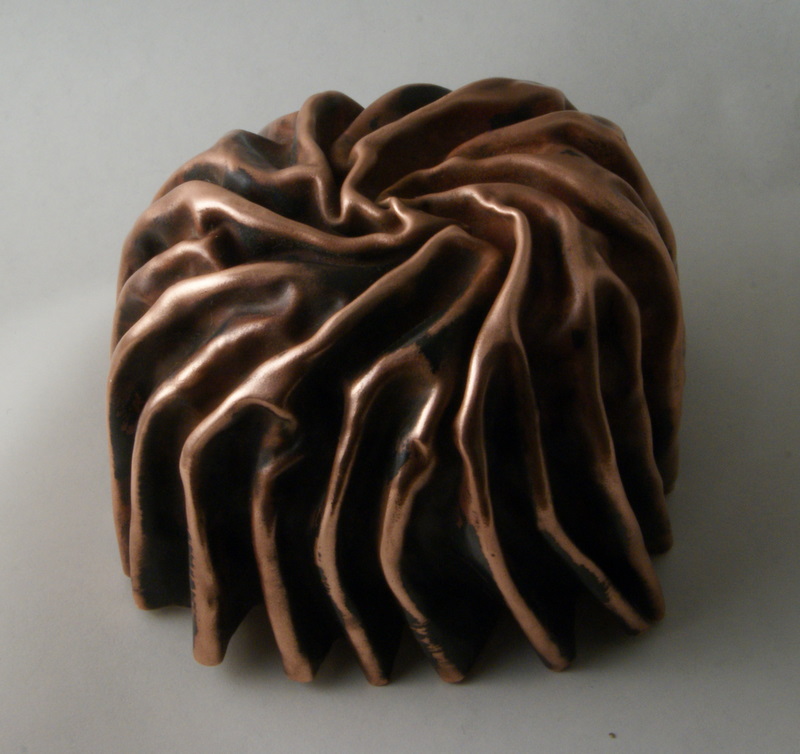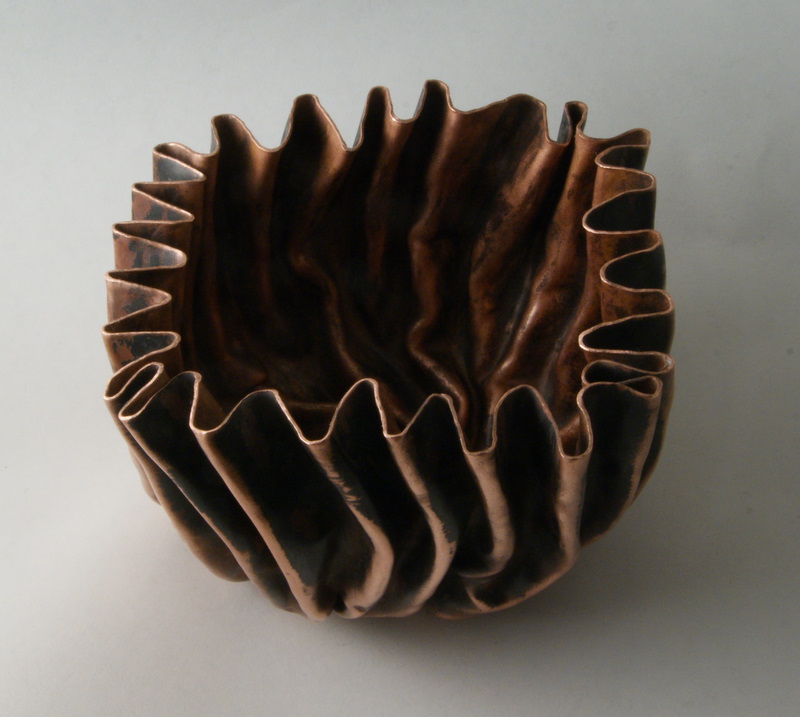 This was an experiment to see if I could get these wrinkled forms to work. I was inspired by two silversmiths I saw in a Goldsmith's hall exhibition - Clare Ransom and Miriam Hanid. Both of whom make startling lovely things.