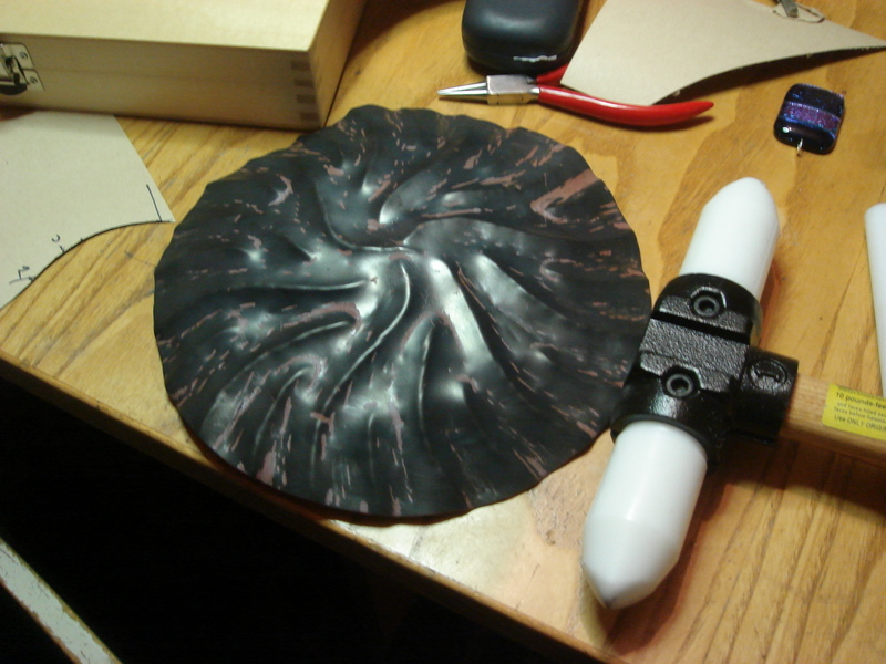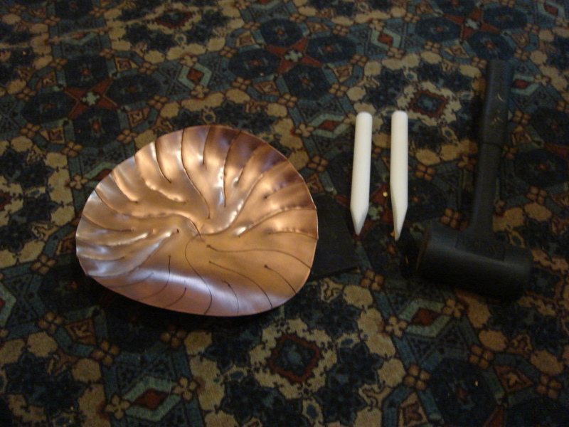 Once the creases are all in place, the thing can be gently shaped with a rubber mallet on a wooden stake. Gently. Giving the thing at the top of the page.