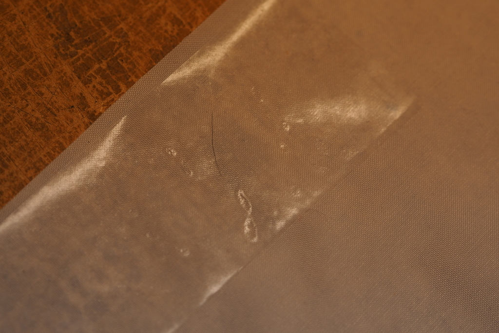 Then we need fabric and glue film. I started with a 4oz PU coated nylon (which is very lightly coated, but basically airproof on its own) and a thermoplastic polyurethane glue film sold for use in marquetry. I think this is actually Bemis 3218. The data sheet suggests it should be glued at 120 to 130°C